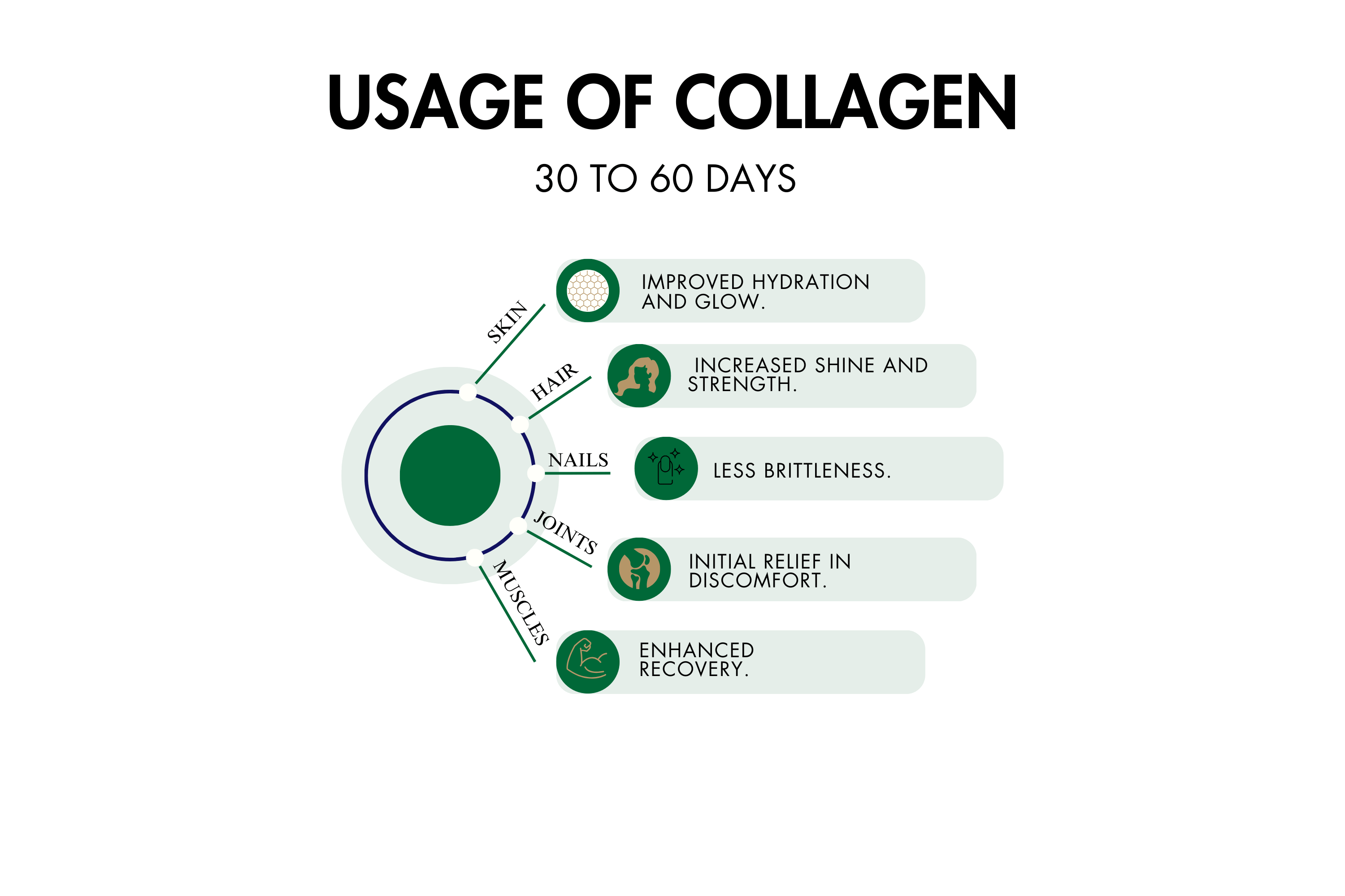 After taking Our Special collagen Within 30-60 days, one is likely to notice improved hydration, elasticity in your skin, and even stronger hair and nails. With time, one may enjoy firm skin with fewer wrinkles, improved joint support, and even stronger hair and nails. That's improvement over time as one keeps using it.