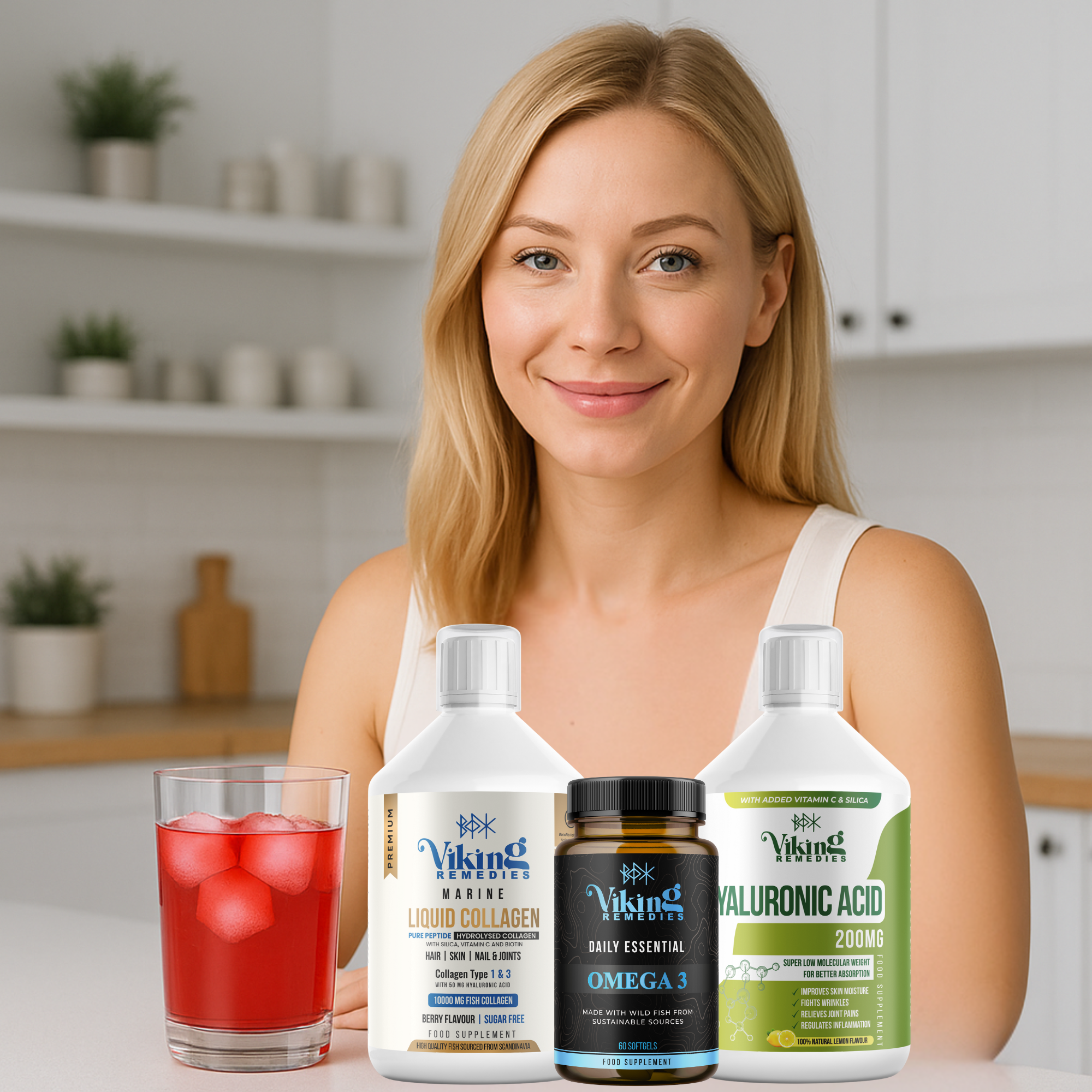 This program combines Collagen (structure) + Hyaluronic Acid (hydration) + Omega-3 (inflammation & barrier) so all three pathways of skin ageing are targeted at the same time.
